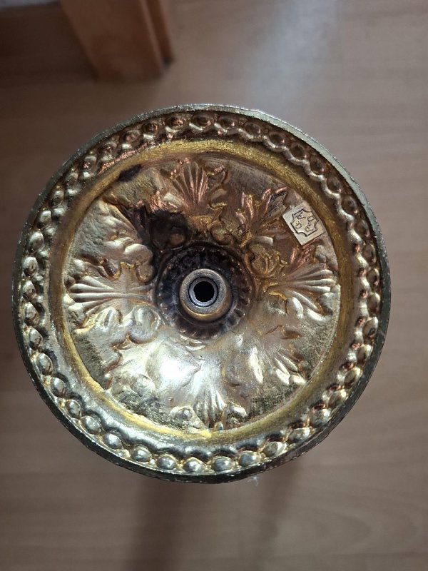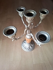 Biete: Vintage französischer fünfarmiger Kerzenständer aus Messing mit Tigeraugenstein