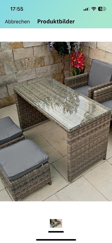 Ich biete Umständehalber neue Balkonmöbel bestehend aus einem Tisch mit Glasplatte,2Sessel mit Kissen und 2 Hocker mit Kissen für 190 € letzter Preis an.Die Möbel sind zu einem Block zusammenschiebbar und eine Abdeckhaube gibts auch dazu.015255776113Versand, Abholung ...