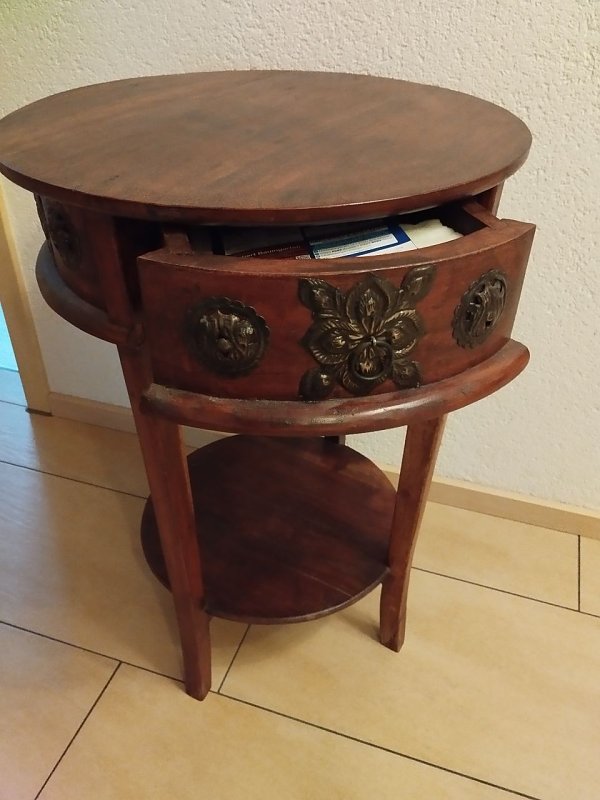 Biete ein kleines rundes auf Antik gemachtes Tischchen mit Schublade an.Durchmesser 50 cm und einer Höhe von 70 cm