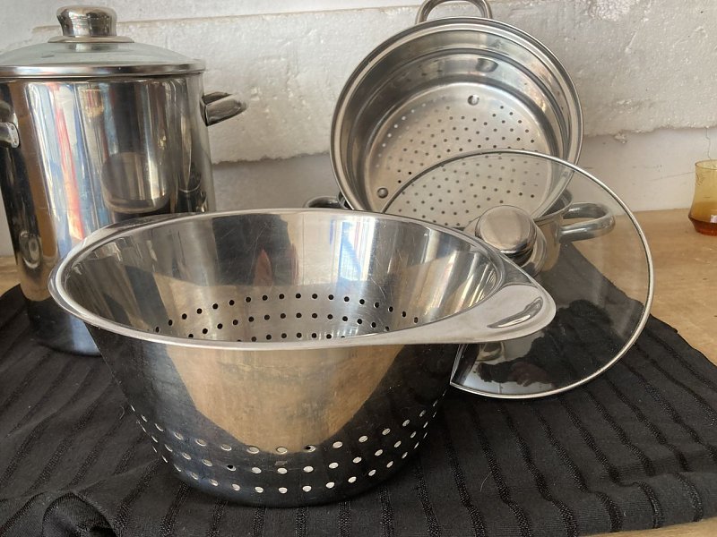 Biete die abgebildeten Töpfe und ein Sieb, alles Edelstahl, sehr guter Zustand.