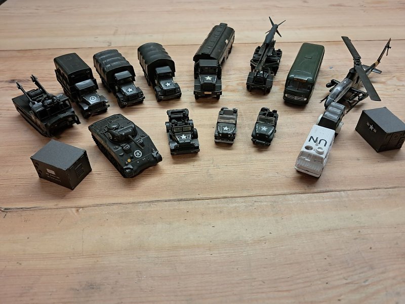 Biete Sammlung an Militärfahrzeugen (US, UN) von Roco, Wiking und Brekina (Hersteller vom Hubschrauber unbekannt) im Maßstab 1:87, passend für H0,