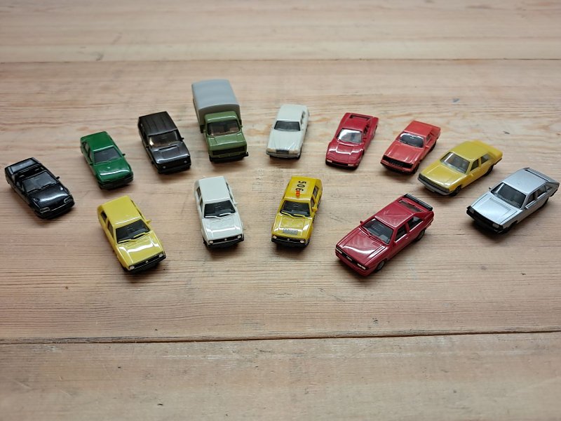 u.a. VW Golf 2, Opel Kadett, Ford Transit und Mustang, Audi 100, Jaguar, Ferrari, Range Rover