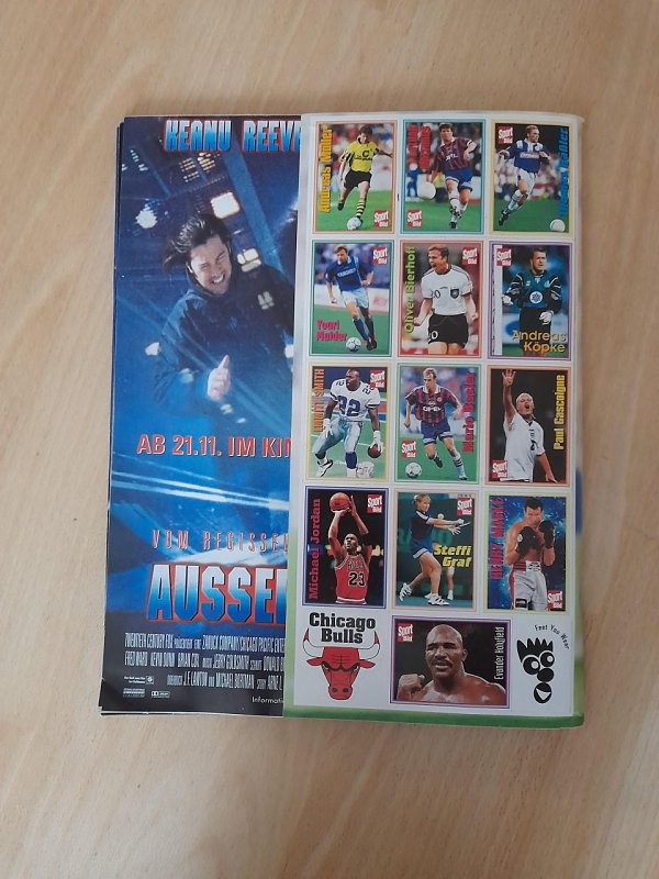 Wie ersichtlich ist es nicht nur das Heft sondern auch mit allen Stickern (außen) sowie ein originales Stickertütchen (Panini) und auch alle Poster sind noch original drin!