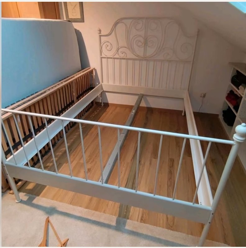 Biete weißes Bettgestell Ikea Leirvik 140x200 ohne Lattenrost aber inkl. Mittelsteg.