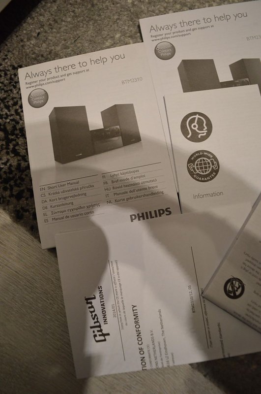 Philips BTM2310/12 Mini Stereoanlage mit digitaler Soundkontrolle (15W RMS, MP3, CD, USB), schwarz, Netzkabel, UKWAntenne, Benutzerhandbuch, Fernbedienung: 21-Tasten-Fernbedienung