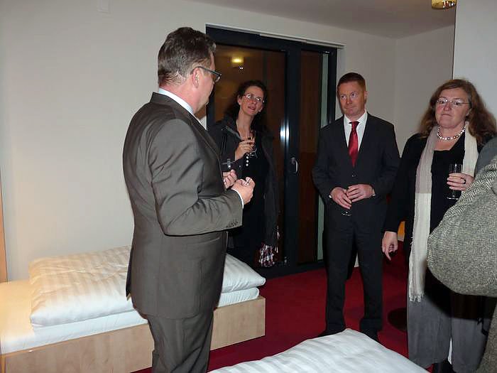 Erst mit diesem Gästehaus kann die Landesmusikakademie ihren Aufgaben voll nachkommen, so Prof. Dr. Eckart Lange, in seinen Begrüßungsworten. Er unterstrich auch nochmals die Bedeutung der Landesmusikakademie auch in wirtschaftlicher Hinsicht für die Stadt Sondershausen. Allein am heutigen Samstag werden 30 Orchester aus ganz Thüringen zu einem Landeswettbewerb in der Stadt weilen. Man sieht, dann reichen auch die 27 Zimmer mit 54 Betten nicht für alle Teilnehmer aus.