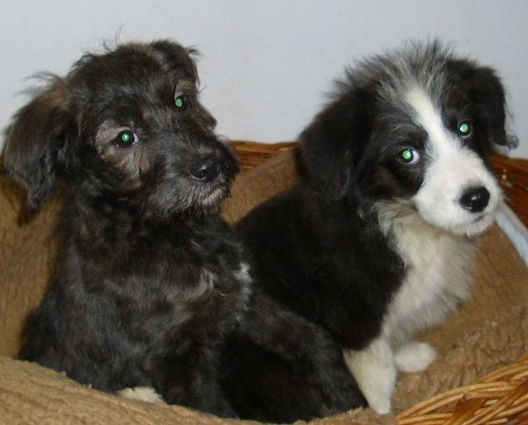 Autor: nnzDie beiden Welpen sind rund12 Wochen alt, entwurmt und auch schon das erste Mal geimpft. Bonny ist eine braun/graue Hündin und Clyde ein schwarz weißer Rüde. Beide werden ungefähr mittelgroß und sind für alles offen. Stubenrein sind sie noch nicht richtig, aber ihre Ziehmutti Biggi hat ihnen schon einiges beigebracht.
