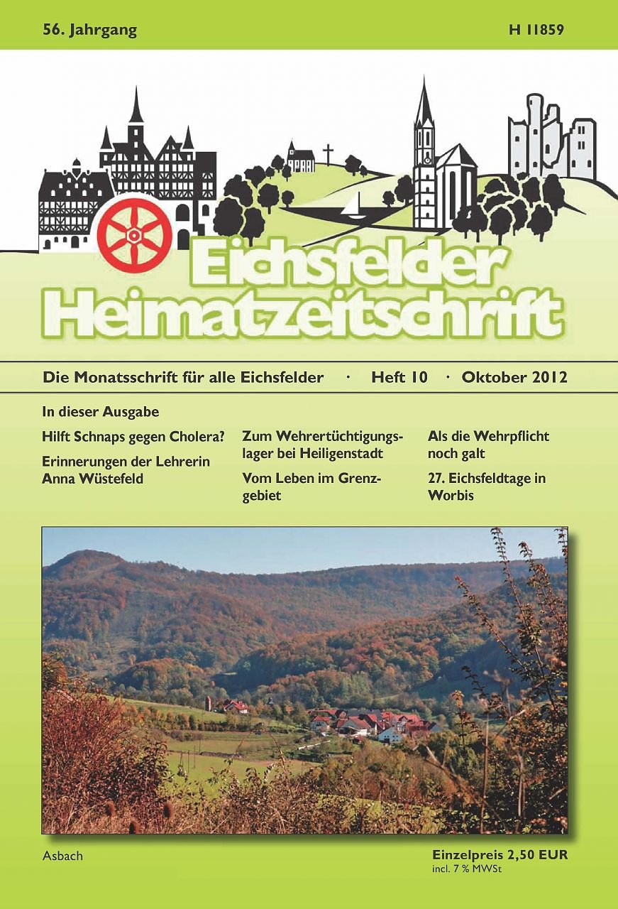 Mit einem Blick auf das idyllisch gelegene Dörfchen Asbach in herbstlicher Umgebung auf dem Titelblatt begrüßt die neueste Ausgabe der Eichsfelder Heimatzeitschrift (EHZ) ihre Leser. Im Innenteil des Oktoberheftes findet sich wieder eine Vielzahl von historischen Beiträgen...