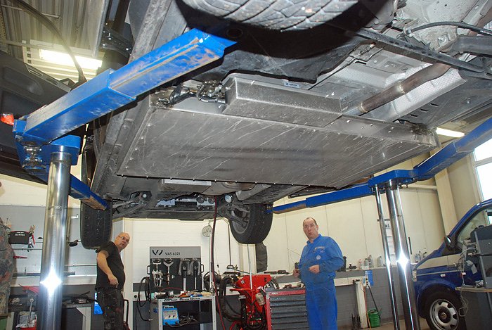 Um die Reise im Wagen noch sicherer zu machen, hat die Firma dafo Deutschland GmbH aus dem rheinland-pfälzischen Neustadt/Wied, der Familie eine High-Tech Löschanlage geschenkt und eingebaut. Wenn ein Auto brennt, zählt jede Sekunde, erklärt Geschäftsführer Markus Stille, während er höchstpersönlich die Anlage montiert.
