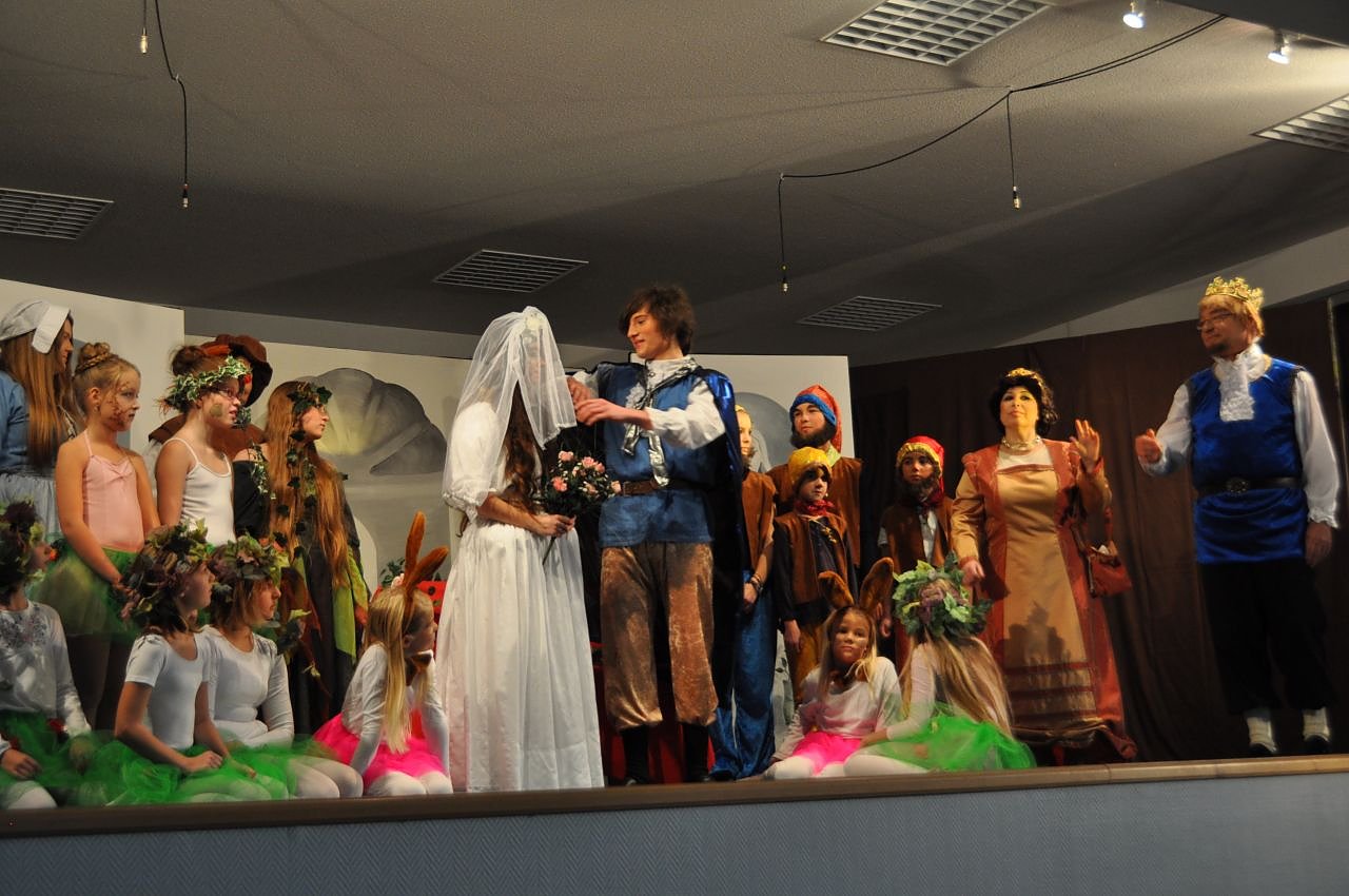 Und das war sehr lobenswert, angefangen vom Klavierspiel von Wolfgang Schneider, dem Bühnenbild, den Kostümen bis zum Spiel und Gesang der Mitwirkenden. Man konnte nicht spüren, wieviel Stunden sie geprobt hatten, sie spielten und sangen wie Profis. Ein großes Applaus und Blumen für Schneewittchen, sind der Dank des Publikums gewesen.