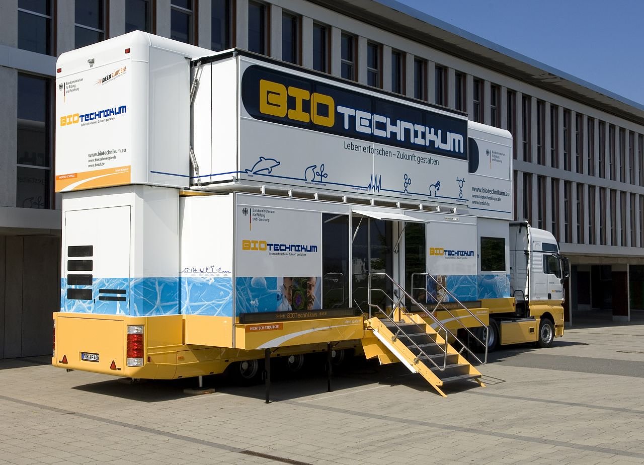 Um Berufsperspektiven und Karrierechancen aufzuzeigen, hat das Bundesministerium für Bildung und Forschung die Informationskampagne BIOTechnikum. Leben erforschen – Zukunft gestalten ins Leben gerufen. Im Mittelpunkt steht das mobile BIOTechnikum, ein doppelstöckiges Fahrzeug, das als Labor, Ausstellungsraum, Informations- und Dialogplattform unterwegs ist. Wissenschaftler begleiten Schülerinnen und Schülern, die breite Öffentlichkeit sowie lokalen Unternehmen auf den Weg in die Welt der Biotechnologie.