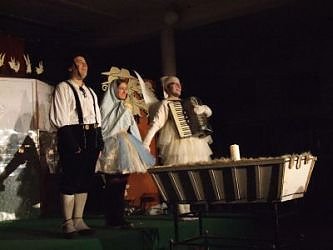 Die Truppe berichtet mit Schwung von dem bedeutenden Ereignis. Und zwar gründlich. Alle Personen und Tiere werden bedacht und dürfen zu Wort kommen. Wirklich alle. Und wenn einmal die Kapazität der beiden Erzähler nicht ausreicht, dann hilft ein Engel, der auch noch Akkordeon spielen kann.