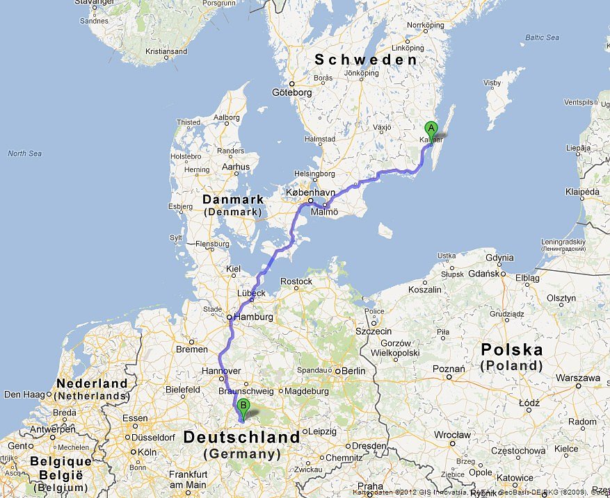 Die BGAA legte fast 1000 Kilometer von Schweden nach Weißenborn-Lüderode zurück. (Quelle: Google Maps)