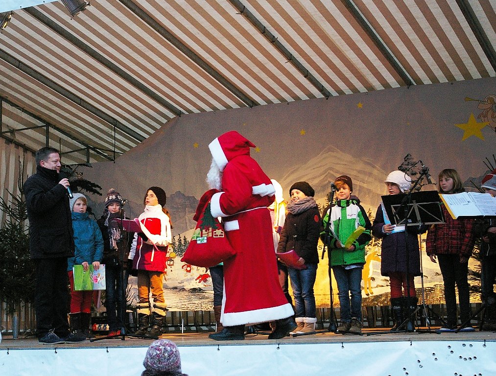 Der Nikolaus, der eigentlich aussah wie der Weihnachtsmann, wollte auch dem Bürgermeister den Abend versüßen, doch das Stadtoberhaupt verzichtete zu Gunsten der Kinder.