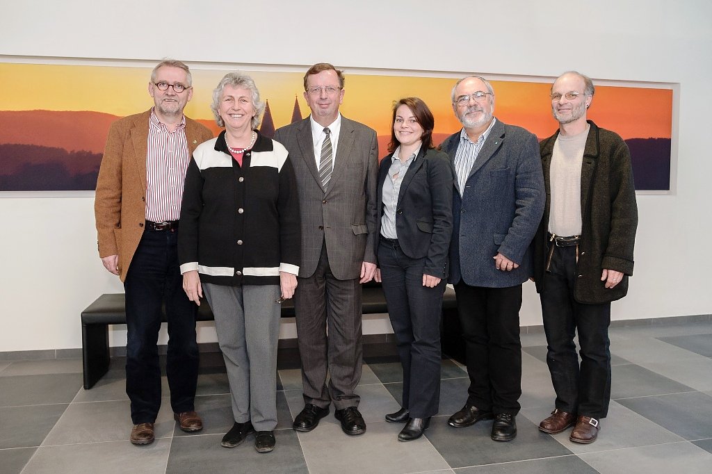 Das Eichsfeld mit dem Regionalbudget weiter fit für die Zukunft zu machen – darauf freuen sich der ARGE-Vorstand Landrat Dr. Werner Henning (3. v. l.) und Dr. Johannes Hager (2. v. r.) sowie der Vorsitzende des Ausschusses für Kreisentwicklung, Arnold Metz (1. v. l.) gemeinsam mit Anke Clausen (2. v. l.), Götz Papke (1. v. r.), beide Vertreter des Vereinsvorstands Eichsfeld Aktiv, und der Projektkoordinatorin Katrin Oberthür (3. v. r.).