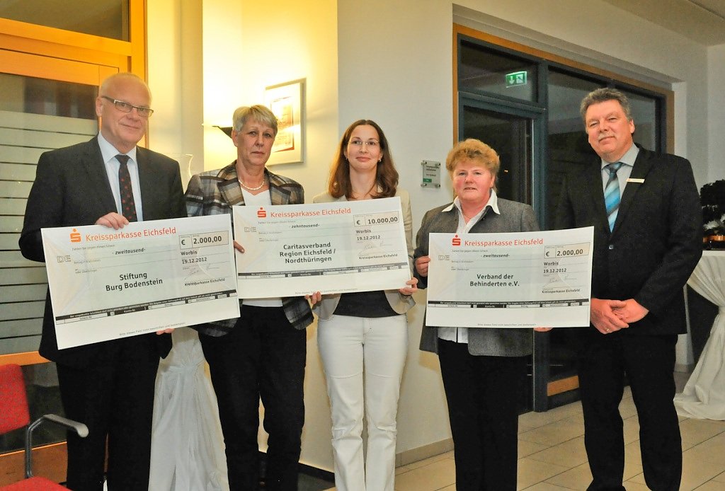 Je 2.000 Euro haben der Blinden- und Sehbehindertenverband Eichsfeld e.V. sowie das Kinderheim St. Josef in Heiligenstadt erhalten. Der Feuerwehrverein Heiligenstadt e.V. erhielt 4.000 Euro. Schon seit einigen Jahren unterstützt die Kreissparkasse in enger Zusammenarbeit mit dem Sozialamt und dem Grundsicherungsamt des Landkreises Eichsfeld sowie der Caritas, Regionalstelle Eichsfeld, Familien in konkreten Notlagen. Auch in diesem Jahr stellten sie hierfür wieder 10.000 Euro zur Verfügung.