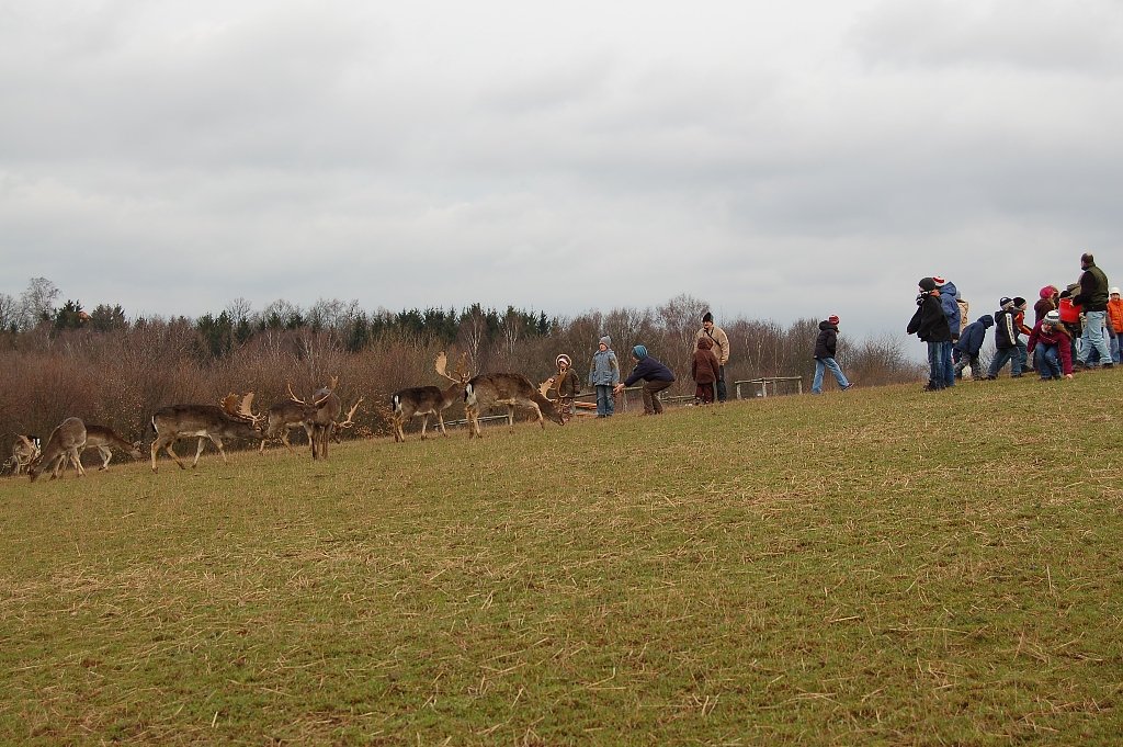 Autor: enAn den thüringischen Winterferientagen 19. und 22. Februar 2013 findet dort unter Leitung eines Mitarbeiters der Umweltbildung eine Damwildfütterung statt, bei der die jungen Besucher auch auf Tuchfühlung mit dem manchmal scheuen Wild gehen können.