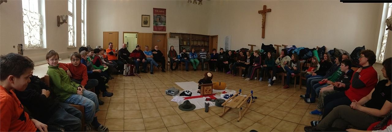 Nach einem gemeinsamen Mittagessen mit den Franziskanern gab es Gruppenspiele im Freien. Am Abend ging es dann zur obligatorischen Nachtwanderung in den Wald. Bruder Johannes, der Held der zu Beginn vorgetragenen Gruselgeschichte, trieb unter anderem sein Unwesen.