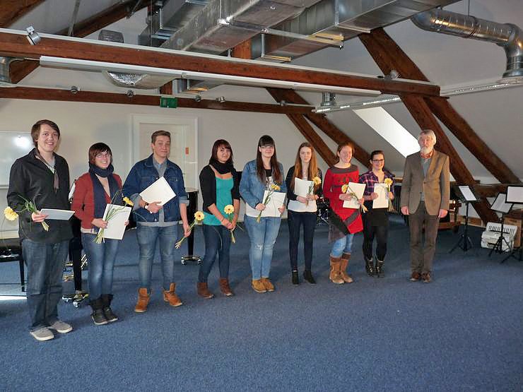 In einer kurzen Begrüßung durch Akademiedirektor Prof. Dr. Eckart Lange gab er eine Übersicht über die nun schon 4. Ausbildung dieser Art. Im September 2012 startete an der Thüringer Landesmusikakademie Sondershausen dieser Jahrgang der Musikmentorenausbildung. Seitdem trafen sich die Jugendlichen aus allen Teilen Thüringens (und so gar aus dem Ruhrgebiet) zu drei weiteren Modulen. Die Ausbildung richtet sich an musikinteressierte und musikalisch versierte Jugendliche ab 15 Jahren, will musikpädagogische Begabungen fördern und dadurch Impulse für das Engagement in der musikalischen Jugendarbeit in Schulen und Vereinen geben.