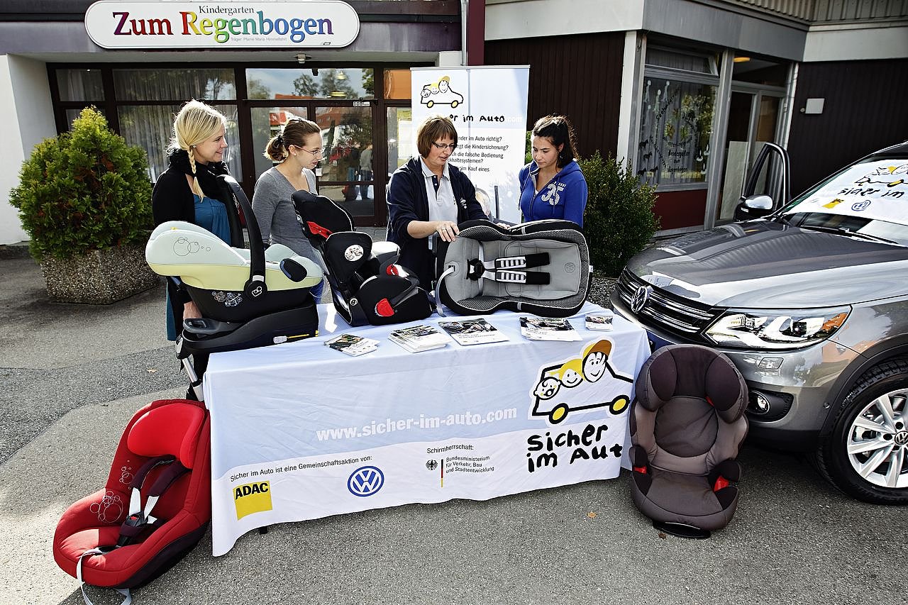 Bei dem kostenlosen ADAC Sicherheitsprogramm lernen die Eltern, worauf beim richtigen Sichern der Kinder zu achten ist. Denn nach Untersuchungen des Clubs unterschätzen Eltern häufig die Unfall- und Verletzungsrisiken. Viele kennen die geltenden Vorschriften kaum und gurten die Kinder falsch an. Rund 110 Moderatoren informieren die Eltern und geben ihnen eine technische Beratung. Dabei können sie die Kinderrückhaltesysteme eigenhändig ausprobieren.