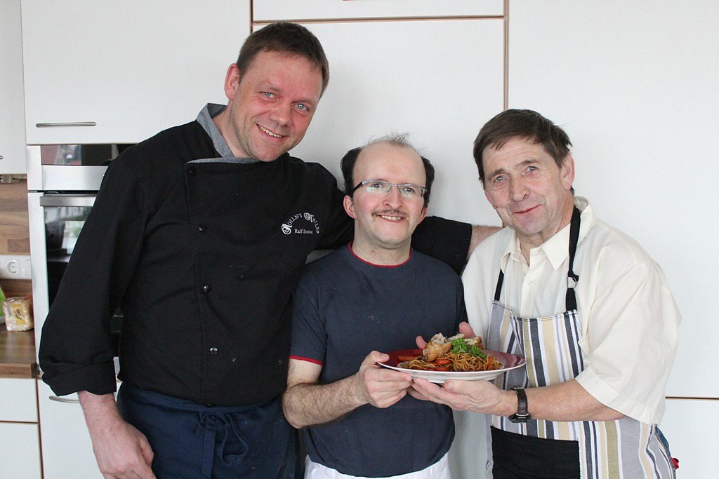 Profikoch Ralf Svatos (li.) freut sich mit seinen Mitstreitern von der Lebenshilfe schon sehr auf das Kochduell heute Nachmittag mit dem Team von Guido Zinke.