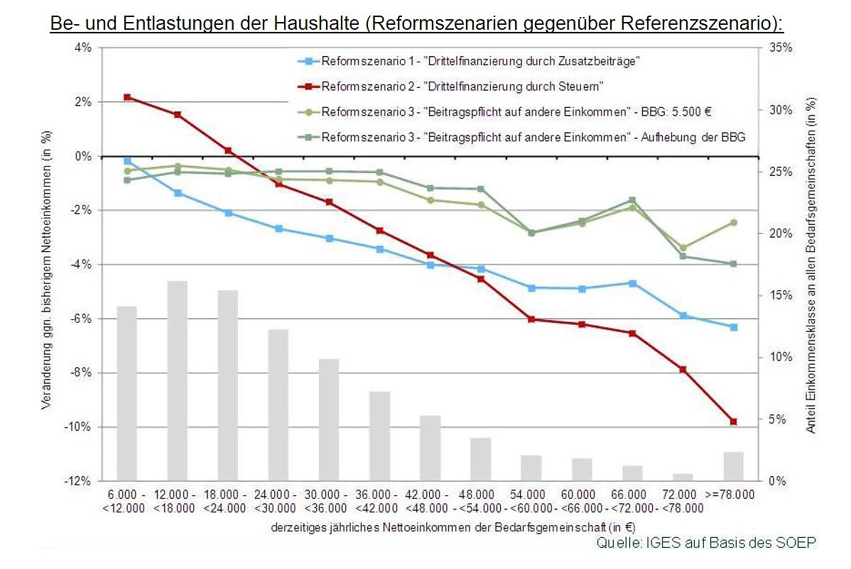 Die derzeit von den Parteien diskutierten Vorschläge zur Einbeziehung nicht sozialversicherungspflichtiger Einkommen in die Krankenversicherung sind in einer von beiden Organisationen heute vorgestellten Studie des Berliner IGES-Instituts miteinander verglichen und anhand der Kriterien Gerechtigkeit, Nachhaltigkeit und Effizienz bewertet worden.