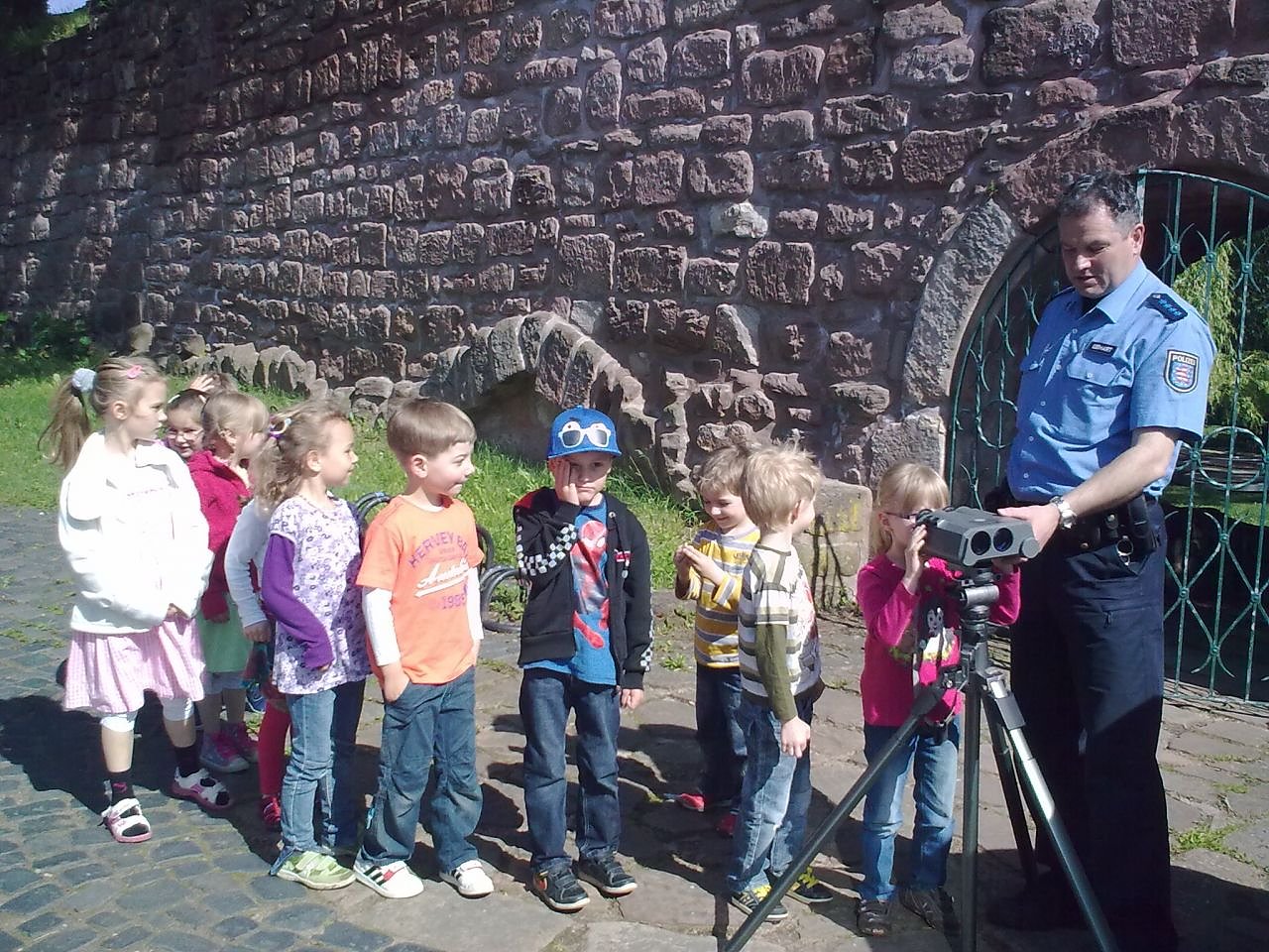 Die Polizei nahm sich der Sache an und hat gestern mal gemessen, wie schnell die Autos und Zweiradfahrer hier überhaupt sind. Das Heiligenstädter Ordnungsamt war mit Thomas Fleischhauer auch vertreten. Es scheint schon schwer zu fallen, die Schrittgeschwindigkeit einzuhalten. Denn einer ist glatt mit 38 unterwegs gewesen. Gestern hatte er Glück - er wurde freundlich vom Kontaktbereichsbeamten Peter Gebhardt darauf hingewiesen, dass er zu schnell war. Und da waren noch einige, die das Geschehen ganz genaut verfolgten und alles wissen wollten: Die Mädchen und Jungs vom städtischen Kindergarten Sebastian Kneipp. Sie haben die Polizei bei ihrer Messung unterstützt und werden das ganz bestimmt auch zu Hause erzählt haben.