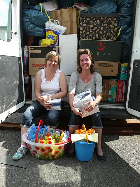 Kirstin Predatsch (re.) und ihr Team haben einen Transporter voll gepackt, Sachen für den nächsten stehen schon bereit.