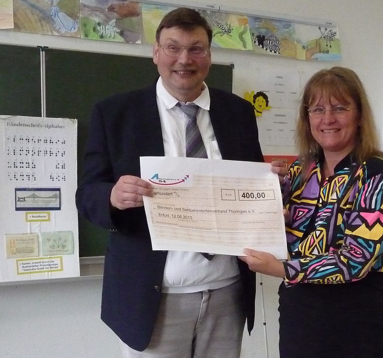 Das der Blinden- und Sehbehindertenverband das Projekt bereits über so einen langen Zeitraum anbieten kann, ist auch ein Verdienst des Vereins Alternative 54". Der 1995 von den Landtagsabgeordneten der PDS (heute DIE LINKE) gegründete Verein spendet die automatischen Erhöhungen der Abgeordneten-Diäten und unterstützt damit soziale, kulturelle und ehrenamtliche Projekte. Seit einigen Jahren auch das Schulprojekt des Blinden- und Sehbehindertenverbandes.