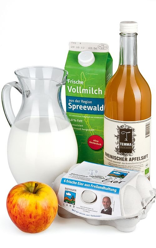 Nur 11 der 29 Anbieter stellen ihre Regionalität sehr glaubwürdig unter Beweis. Oft sind das Bioprodukte oder Produkte von Regionalinitiativen, etwa Apfelsaft von Bio Company, Milch von Ökodorf Brodowin und Unser Land sowie Eier von Feneberg/Von Hier.