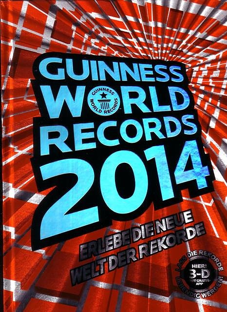 Darüber hinaus enthält das Guinness World Records Buch 2014 viele weitere Rekordrubriken, wie z. Bsp. aus den Bereichen Technik, Natur oder dem Tierreich, berichtet über erfolgreiche Menschen aus dem Film- und aus dem Musikbusiness und bietet ganz neu auch zusätzlich interessante 3 D Apps an.