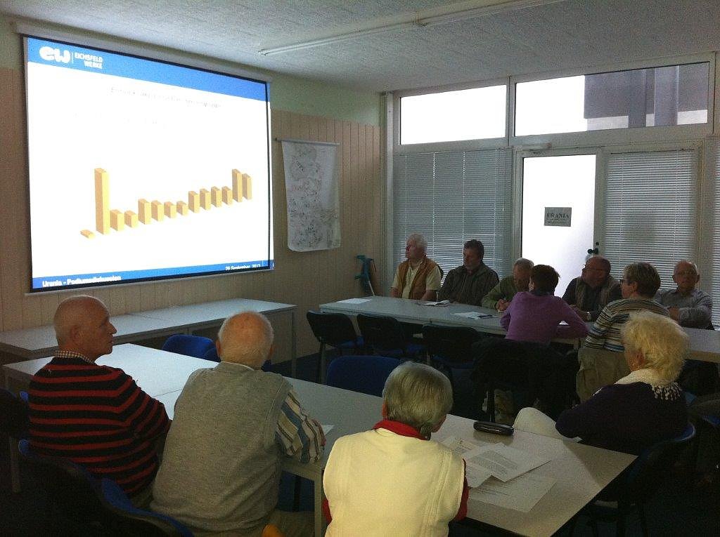 Als Außenstehender ist man verwundert, was dazu alles nötig ist. Z.B.: viele Tiefbrunnen und Quellen, Hochbehälter, Hydranten, hunderte Kilometer Transportleitungen, Orts- und Grundstücksanschlüsse, Transportsammler, Ortskanäle, Rückhaltebecken, Regenüberlaufbecken, Pumpwerke, Kläranlagen, Technik zum Transport des Klärschlammes, Computergesteuerte Überwachungstechnik und natürlich geschultes Fachpersonal, das alle anstehenden Aufgaben und auftretende Havarien meistern kann. Der Vorstand der URANIA bedankt sich noch einmal, auch im Namen der Teilnehmer, bei den beiden Referenten für ihre verständlichen und anschaulichen Ausführungen.