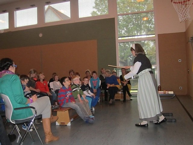 Zum Abschluss erzählte Ingrid Annel den Kindern von ihrer Vorliebe für Buchstabensuppe und wie dabei Geschichten enstehen, die in ihrem Kinderbuch 365 Kindergeschichten nachzulesen sind. Die Zuhörer waren vom schauspielerischen Einsatz und Gesang der Erfurterin begeistert.