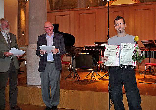 Vom 30. Oktober bis 3. November fand der diesjährige Workshop in der Thüringer Landesmusikakademie Sondershausen statt. Vier Tage lang arbeiteten die Dozenten Johannes K. Hildebrandt (Weimar), Peter Helmut Lang (Weimar) und Wolfgang Wollschläger (Erfurt) mit Jugendlichen zwischen 14 und 23 Jahren, die aus ganz Thüringen anreisen. Zeitgleich traf sich das Landesjugendensemble für Neue Musik unter der künstlerischen Leitung von Juri Lebedev dass zu Beginn der Preisverleihung quasi seine Generalprobe ablegte, denn bald findet das Treffen der entsprechenden Landesjugend- Ensembles.