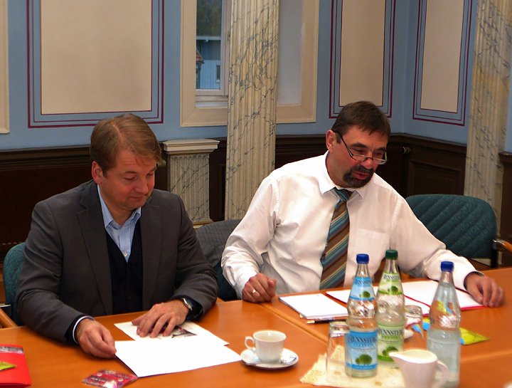 v. li. Intendant Lars Tietje und Bürgermeister Joachim Kreyer im Pressegespräch; Foto: Birgit Susemihl