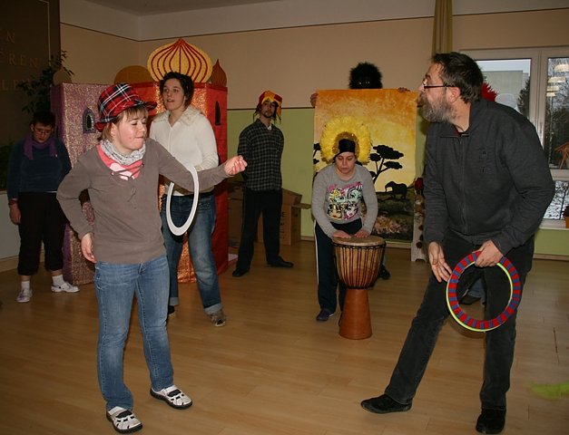 Im Haus am Lunapark wohnen 26 Erwachsene mit Mehrfachbehinderungen: taubblinde oder autistische Menschen oder Menschen mit Hör-Seh-Behinderungen. Dieses Wohn- und Therapiezentrum arbeitet unter dem Dach des Internationalen Bildungs- und Sozialwerkes (int-bsw). Noch nicht einmal Heimleiterin Uta Hübenthal hatten die Akteure etwas verraten. Sie wusste nur, dass es zur nachmittäglichen Kaffeerunde vor dem 2. Adventsonntag ein Programm geben wird.