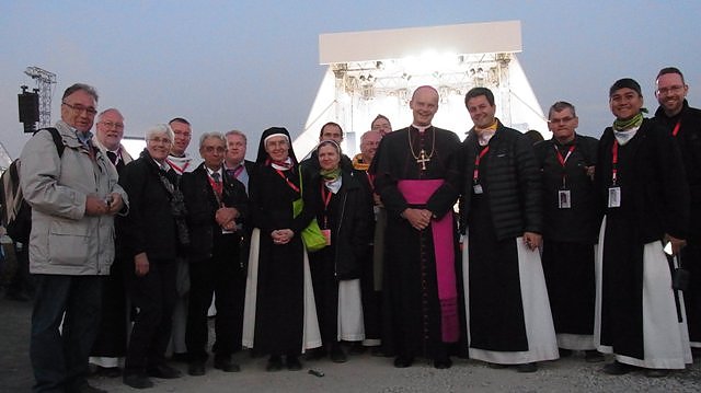 Begegnung des Bundesvorstandes des Bundes der Eichsfelder Vereine und des Zisterzienserkonventes Bochum-Stiepel mit Bischof Dr. Franz-Josef Overbeck (Essen, Mitte) im Rahmen des Besuchs Papst Benedikt XVI. am 23. September 2011 in Etzelsbach.