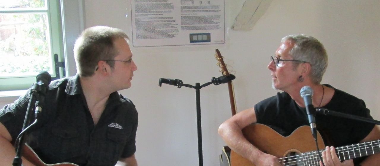 Der Liedermacherabend steht unter dem Motto Akkordgeflüsterund beginnt um 19.30 Uhr. Akkordgeflüster sind das Liedermacherduo Klaus Nitschke und Michael Scheide mit ihren Gitarren und handgemachten Liedern. In einem bunten Mix philosophieren die Beiden über Alltäglichkeiten und Besonderheiten im ganz normalen Leben.