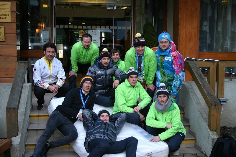 "Die Jungs machen richtig viel Spaß." Das sagte Sergej König über die Nordischen Kombinierer mit ihrem Cheftrainer Hermann Weinbuch (neben Sergej König). Sie waren auch sofort bereit, sich für ein Erinnerungsfoto aufzustellen.
