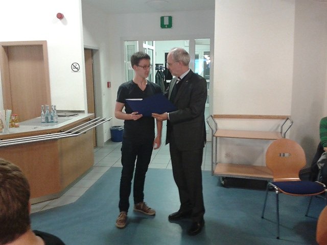 Bürgermeister Wolfgang Nolte bei der Ehrung von Maximilian Jegerczyk.