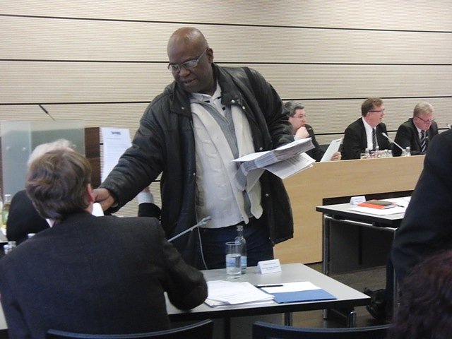 Kurz vor Eröffnung des Kreistages kamen zwei Vertreter des sogenannten Voiceforums und verteilten in den Saal und verteilten A4-Blätter unter der Überschrift "Für die Schließung des Lagers in Breitenworbis"- einer aus Berlin, der andere aus dem Asylbewerberheim Breitenworbis. Sie nahmen zunächst Platz, dann fiel der Mann aus Berlin erst dem Landrat ins Wort und später dann auch Rolf Behrens und sagte immer wieder, es ginge um Menschenrechte.