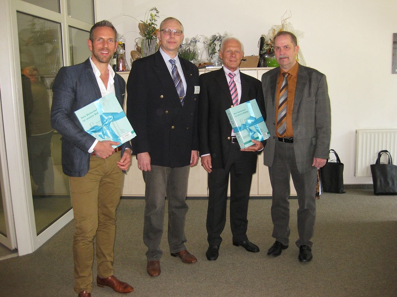 Erinnerungsfoto der ehemaligen geschäftsführenden Gesellschafter, gemeinsam mit dem neuen geschäftsführenden Gesellschafter: (v.l.) Benjamin Vogel, Thomas Ehbrecht, Hans-Peter von der Heide und Lothar Henkel.