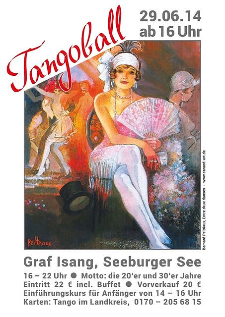 Aktuell laden wir ein zum Tangoball (Milonga) am 29.06. im Graf Isang (Seeburg, Seestr. 37, am Seeburger See). Motto: die 20'er und 30'er Jahre. Die Kleidung darf gerne ein wenig an diese Zeit angepaßt