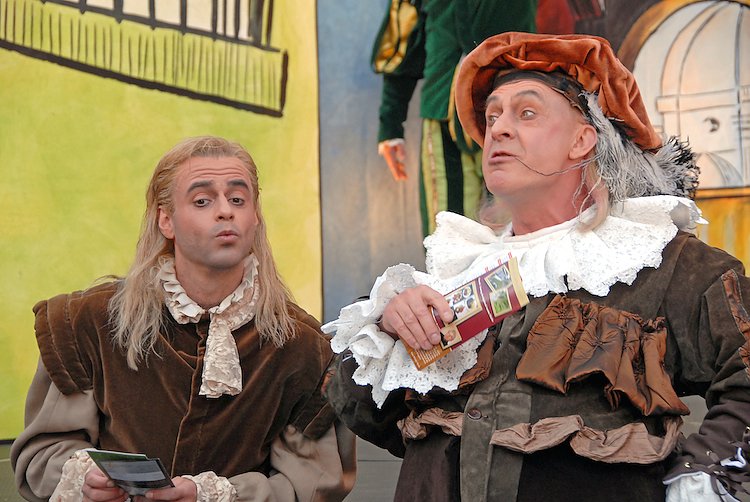 Zwei Stunden pures Vergnügen im Freien: Ligurio (Alexander Abramyan) lauscht den Ausführungen Messer Nikias (Karl Karliczek) Foto: Dirk Schröter, Agentur le petit