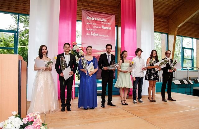 In der diesjährigen Feierstunde wurden vielfältige musikalische Akzente gesetzt. Der Schulchor unter der Leitung von Irina Gemsa und ein Ensemble aus Abiturienten und Gästen (Leitung: Barbara Schuchardt) steuerten einfühlsame Beispiele moderner Chormusik bei. Das schon im letzten Jahr umjubelte Saxophonquartett, bestehend aus Mitgliedern der Eichsfelder Musikschule unter Leitung von Wolfgang Busse, stimmte mit brasilianischen Rhythmen auf den Abiturball ein, der am Abend in der Lindenhalle in Niederorschel folgte.