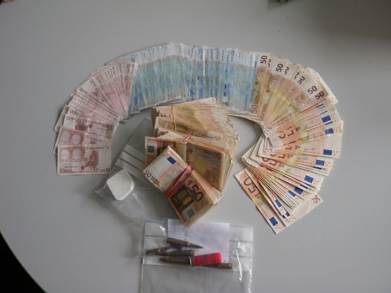 Heute konnten 54 Gramm Kokain und rund 40.000 Euro Bargeld sichergestellt werden. Außerdem fanden die Ermittler mehrere Patronen. Die Beamten vollstreckten gegen einen 43jährigen und einen 34jährigen Mann Haftbefehle. Diese wurden heute durch den Haftrichter am Amtsgericht Gera verkündet und in Vollzug gesetzt.