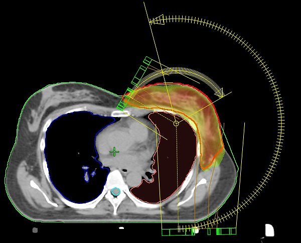 Wir bestrahlen die Brust nicht standardisiert, sondern programmieren die Technik so, dass der Dosisverlauf individuell an die jeweilige Brust angepasst wird. Und das ist von Frau zu Frau immer unterschiedlich. Kollateralschäden an benachbarten Organen werden so auf ein Minimum reduziert”, berichtet der leitende Medizinphysiker Dirk Strauß.
