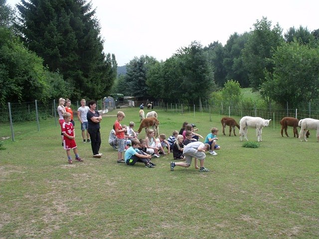 Am Dienstagmorgen frühstückten wir kräftig und nach der Morgenrunde in der Kapelle, wo viel gesungen wurde, bastelten wir und spielten Tischkicker und Billard. Am Nachmittag besuchten wir dann die Alpakas in Heiligenstadt, wo uns die Natur der Tiere und ihre Wolle näher gebracht wurden. Später maßen wir uns im Kegeln.