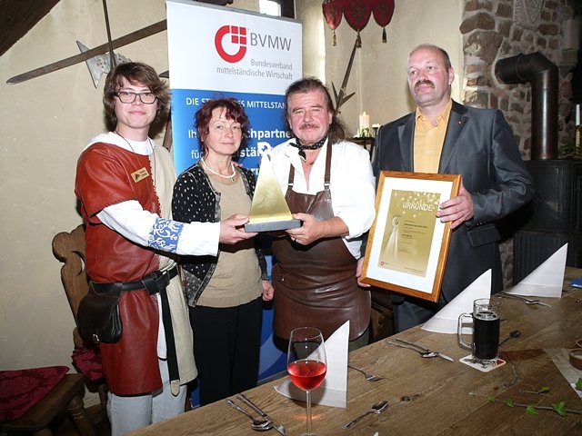 Familie Röhrig freut sich über die Auszeichnung, die Andreas Schreiber (re.) vom BVMW gestern Abend offiziell übergab.