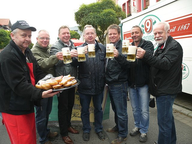 Jedenfalls hatte Ortsbürgermeister Dirk Moll am Vormittag Premiere: er durfte zum ersten Mal beim Herbstmarkt das Fass Bier anstechen, dass, wie jedes Jahr, von der Brauerei Neunspringe gesponsert wird. Die Fleischerei Schafberg sorgte für die Besucher für belegte Brötchen, die sie ebenfalls nicht bezahlen mussten.